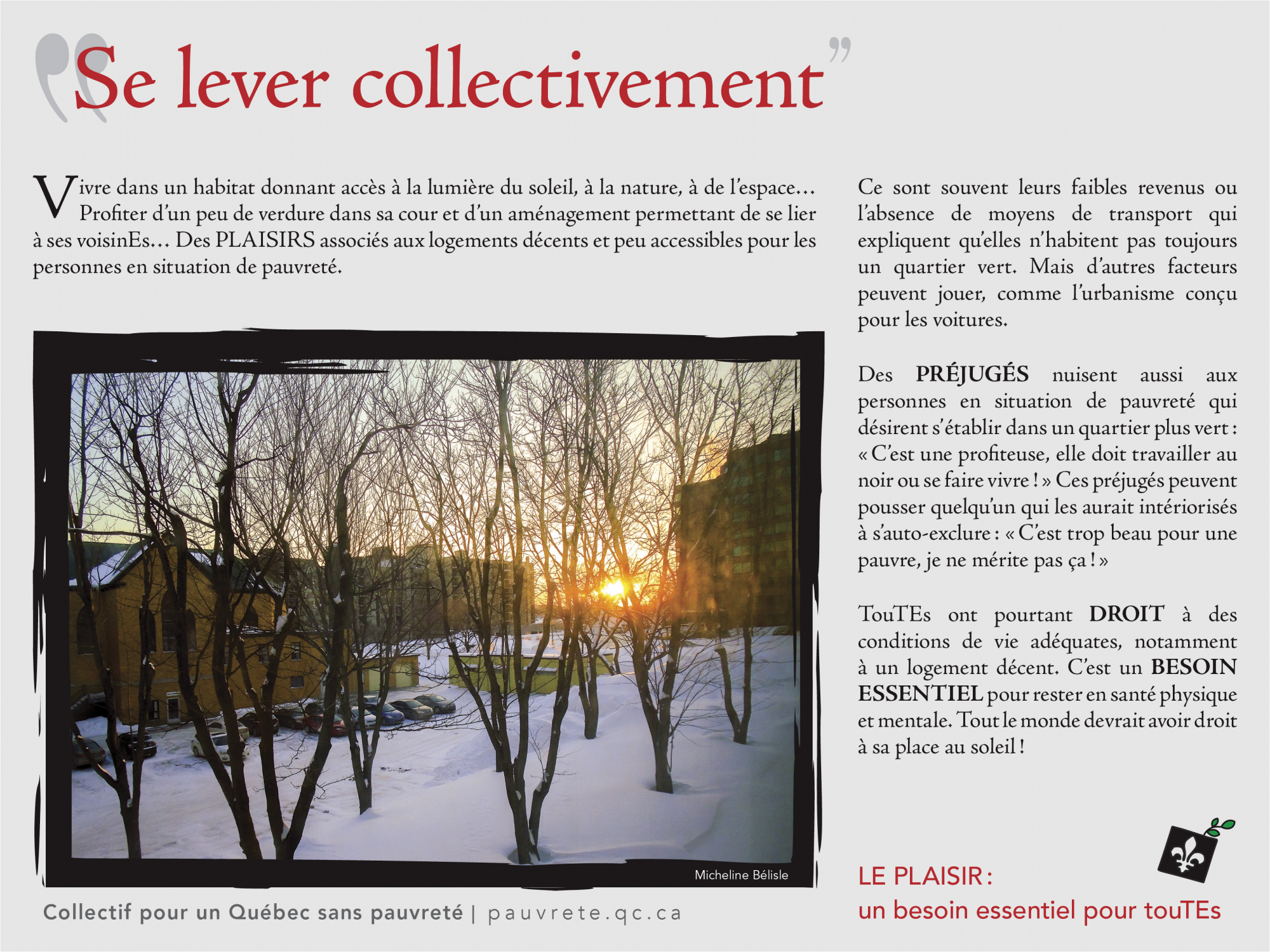 [16] Collectif pour un Québec sans pauvreté, exposition «Le plaisir: un besoin essentiel pour toutes et tous ».